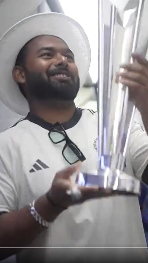 Arshdeep Singh with his father and the T20 World Cup 2024 trophy during the journey from Barbados to India.