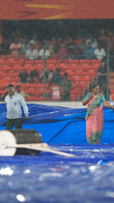 Ground staff members gave their all to preserve the pitch and the field. They covered the whole ground with multiple covers.