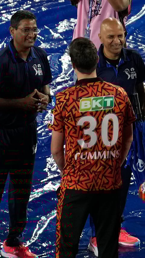 SRH captain Pat Cummins was seen having a conversation with GT skipper Shubman Gill when the drizzle stopped for some time.