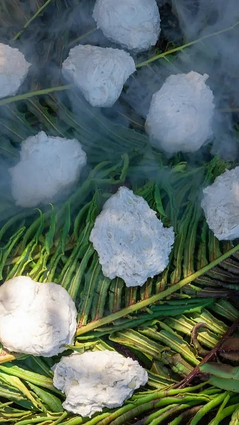 It is a traditional Scandinavian dumpling made from rye or barley flour and filled with animal blood. Traditionally filled with reindeer blood, modern versions use pork blood and other types. These dumplings, resembling a blend of blood sausage and potstickers, are often filled with sautéed onions and bacon, cooked in meat broths, and served with fried bacon, butter, and lingonberry jam.