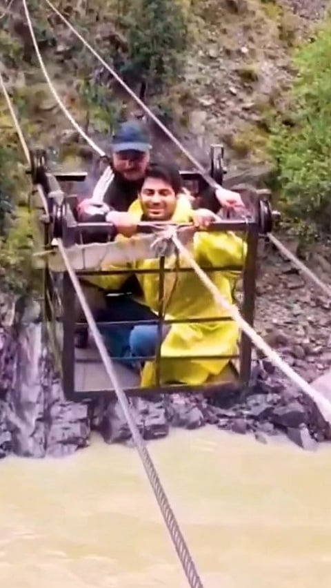 Polling party treks 10 kilometers on foot, crosses river amid rainfall, to reach a polling station in Jammu and Kashmir's Kishtwar.