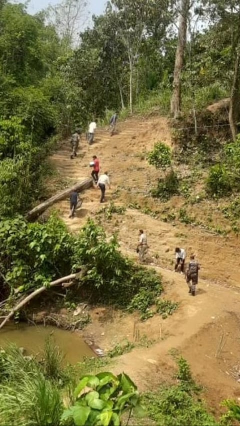 A polling trekking their way to Gate and Gasheng village under Payum circle in Siang district, Arunachal Pradesh, on April 17