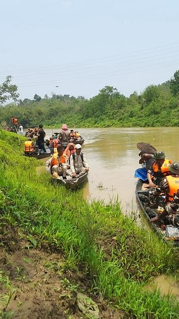Polling parties travelling hours by boat and reaching their respective polling stations in Jiribam District of Manipur in this Lok Sabha elections 2024