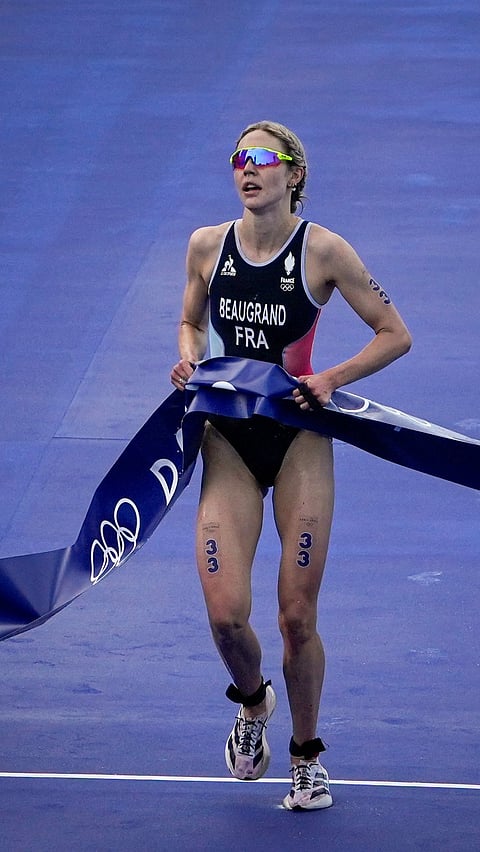 Cassandre Beaugrand of France won the women's triathlon at the Paris Olympics in front of thousands of home crowd.