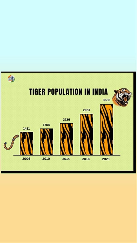 As per the 5th cycle of the All India Tiger Estimation 2022 (usually done in cycles of four years) summary report, India has a minimum of 3,167 tigers and is now home to more than 70% of the world's wild tiger population