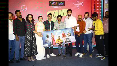 Actor Varun Tej attended the pre-release event of actors Raj Tarun and Varsha Bollamma starrer ‘Stand Up Rahul’. The Santoo Mohan Veeranki directorial had its pre-release event at Hydereabad on Wednesday (March 16) hosted a press event in Hyderabad. During the event Tej expressed his faith on the film and appreciated the actors for their hardwork.