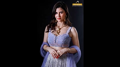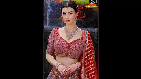 Summer is here, and so is the wedding season! So, if you are looking for the perfect trendy outfit inspiration, fikr not and just take a look at Giorgia Andriani's modern bridal look! When coupled with trendy jewellery, this stunning red lehenga with delicate flower embroidery is the ideal addition to your wardrobe. The emerald and diamonds are a stunning combination, and the detailing on the necklace, earrings, ring, bracelets, and mang tikka complete the look. Keeping it modern and simple, Giorgia paired this look with blushed cheeks, mascara-laden eyelashes, glossy lips, and some soft curls. Surely, the right jewellery can set you apart from the crowd.