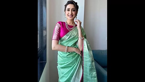 Pragya Jaiswal is often seen effortlessly donning Kanchipuram sarees, and one of her standout looks is a mint green saree paired with a pink blouse. The carefully curated statement jewellery perfectly compliments the ensemble, showcasing a refreshing take on the classic attire.