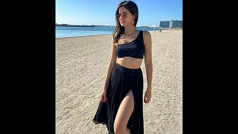 Ananya Panday embraced a casual yet sexy beach look in a black co-ord set with a thigh-high slit, seamlessly combining comfort with style.