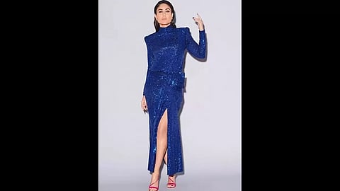 Kareena Kapoor epitomized elegance and sophistication in a shimmery electric blue gown with a turtle neck and pink heels.