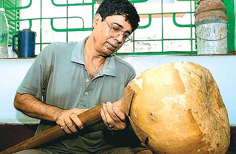 Hiren Roy and Sons’ main competitor for decades was Hemen & Co, and today 86-year-old Hemen Sen deeply laments the demise of his rival, because he fears the bells toll for him as well. “Hiren Roy’s closure is perhaps the biggest indication that our art is no longer much in demand,” he says. Clad in a lungi, the bespectacled old man is hunched over a half-finished instrument, dusting off chiselled chips of wood with the kind of care that mothers lavish on their babies. So absorbed is he in his task that he does not notice a couple of foreigners standing at the door of his shop.