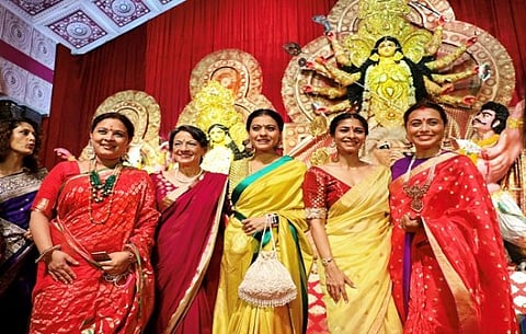 Cousin sisters Kajol and Rani Mukherji were seen celebrating the festival, clad in traditional sarees at the family gathering. Kajol's sister Tanisha Mukherji and mother Tanuja Mukherji also celebrated the event with excitement and devotion.