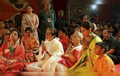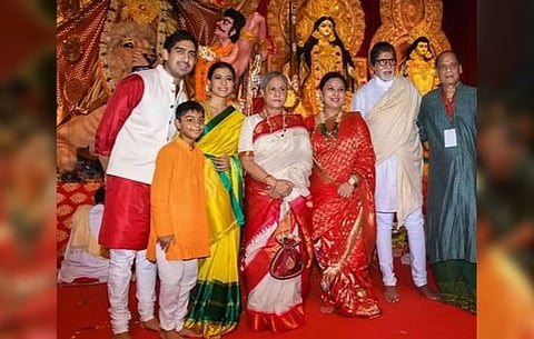 Filmmaker Ayan Mukherji's father Deb Mukherjee and his cousin Sharbani Mukherjee had organised a sarbojanik Durga Puja samite in Mumbai, where several B-towners came to seek blessings from Maa Durga.