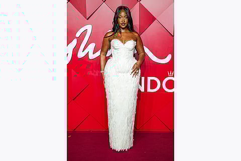 Shalom Brune-Franklin poses for photographers upon arrival at the The Fashion Awards 2024 in London.