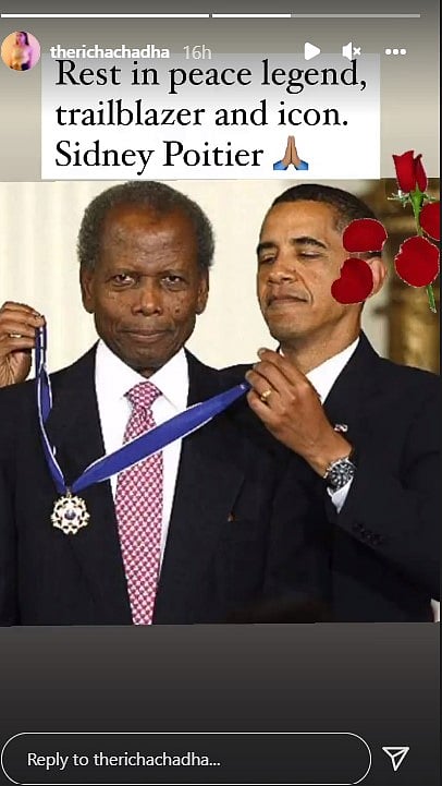 Actress Richa Chadha took to her Instagram story and called Poitier a legend, trailblazer and an icon.
