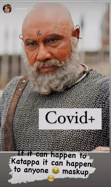 To this news, veteran Bollywood actress Neetu Kapoor found humour in the situation and advised fans to be cautious. "If it can happen to Katappa, it can happen to anyone. Mask up," she wrote on her Instagram story.