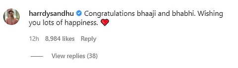 Harrdy Sandhu congratulated the couple on Vicky Kaushal’s post.