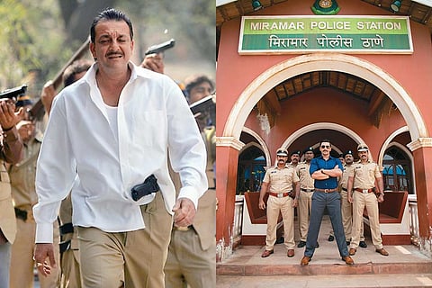 Sanjay Dutt in Shootout at Lokhanwala; right, Ranveer in Simmba.