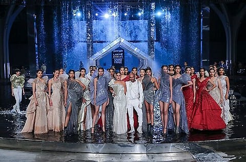 Gaurav Gupta weaves magic and redefines the future of sustainable fashion at the Lakmé Absolute Grand Finale. The collection titled #Redefine was brought to life by showstopper and Lakmé Brand Ambassador, Kareena Kapoor Khan who played muse to Gaurav’s gorgeous creations. Kareena dazzled the ramp in an ivory and light gold coloured heavily embellished sculpted gown. It incorporated Gaurav’s precise signature sculpting with a new fan boning.
