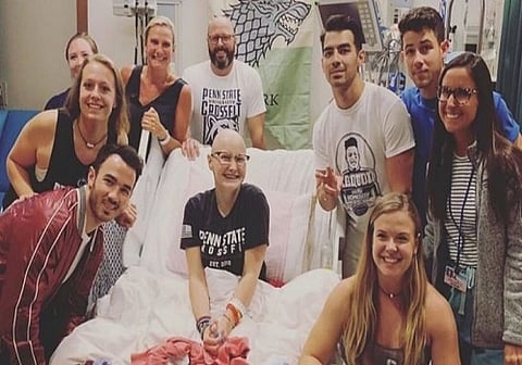 Before their concert, Nick, Joe and Kevin, along with Priyanka, stopped by at a local hospital to visit to their young fan Lily Jordan, who is undergoing chemotherapy, reports "people.com". Jordan, who could not attent the Jonas concert, had requested in jest that the brothers visit her at the hospital.