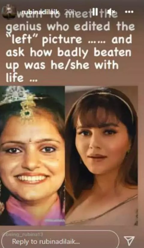 Television actress Rubina Dilaik recently slammed an internet user for circulating a badly edited throwback picture of the actress. She took it to her Instagram handle and shared a collage posted by one of her fan pages on her story.