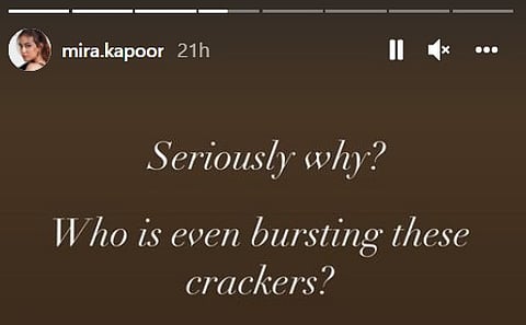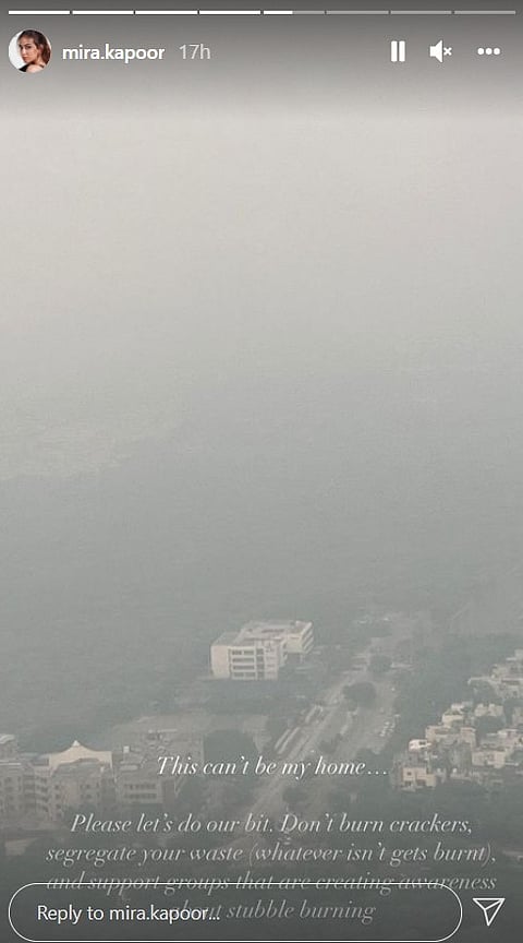 Bollywood actor Shahid Kapoor's wife Mira Rajput expressed her disappointment over the severely polluted air quality in Delhi. Rajput, took to Instagram and shared a post indicating the air quality level in the Capital, a day after Diwali celebrations, and wrote, “Seriously why? Who is even bursting these crackers?”