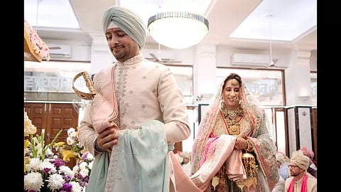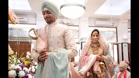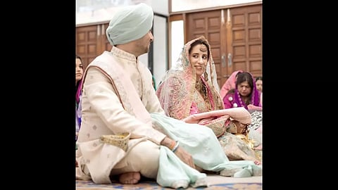 Filmmaker Guneet Monga and Delhi-based fashion entrepreneur Sunny Kapoor took their wedding vows in a traditional Sikh wedding on the morning of December 12. The fairy tale love story took the next step to their happily ever after in front of the holy Guru Granth Sahib at the 4 Bungalows Gurdwara in Mumbai.