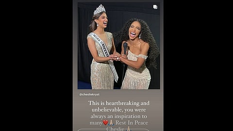 Cheslie Kryst, Miss USA 2019, passed away on Sunday. Miss Universe 2021 Harnaaz Sandhu wrote Kryst a heartfelt note in which she expressed her "heartbreak" over the news.