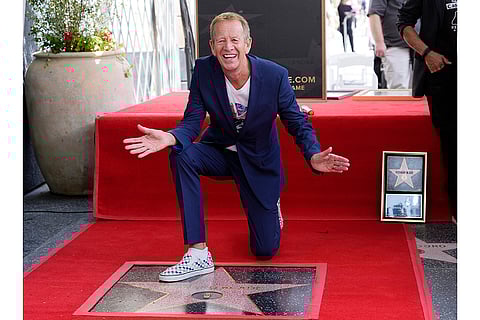 Radio personality Richard Blade poses atop his new star on the Hollywood Walk of Fame following a ceremony in Los Angeles.