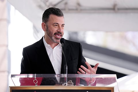 Guest speaker Jimmy Kimmel addresses the audience during a ceremony to award radio personality Richard Blade a star on the Hollywood Walk of Fame in Los Angeles.