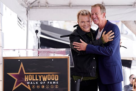 Radio personality Richard Blade, right, poses with guest speaker Billy Idol after Blade received a star on the Hollywood Walk of Fame in Los Angeles.
