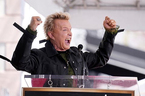 Guest speaker Billy Idol addresses the crowd during a ceremony to award radio personality Richard Blade a star on the Hollywood Walk of Fame in Los Angeles.