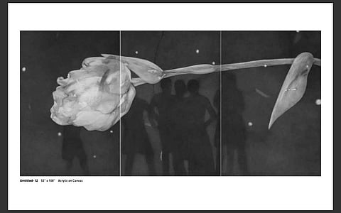 “The figures in my art that I have been practicing for over two decades slowly got replaced by elements of nature like trees and flowers, because I believe that flowers, and trees, and leaves… they too are feeling the suffocation, and suffering because of the pollution,” the artist said.