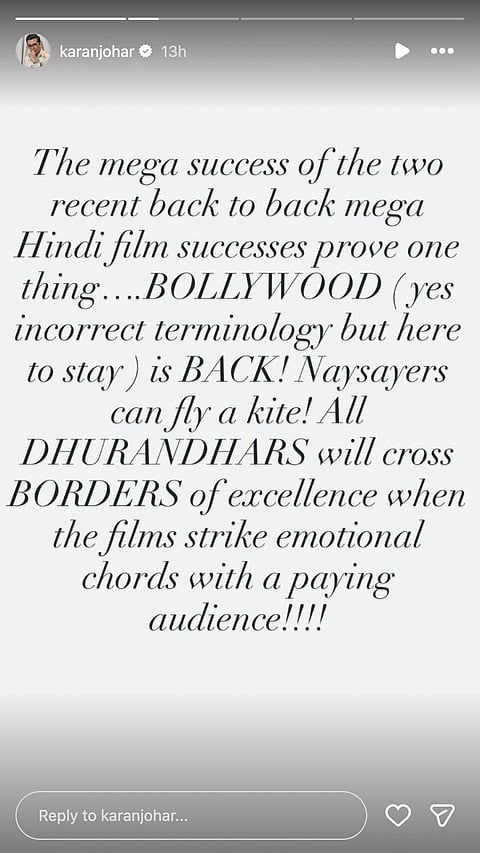 Karan Johar’s reaction reflects a broader sentiment within the industry, where consistent box office performances are being seen as a turning point for Hindi cinema after years of uncertainty.