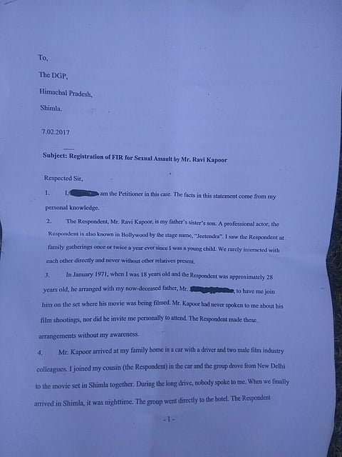 According to the FIR, the victim decided to file a police complaint after the demise of her parents (Jeetendra's uncle and aunt) who would have been "heartbroken" on the knowledge of the alleged abuse.