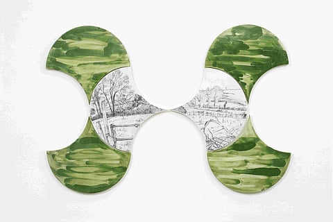 The show titled, “Migrations” underway at the Vadehra Art Gallery here in a way seems to converge the artist's lived experiences in different parts of the world and his most memorable impressions of these places into this one exhibition space.