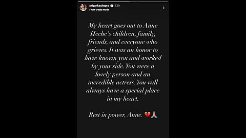 Indian actress Priyanka Chopra Jonas has paid a heartfelt tribute to actress Anne Heche, who passed away following a fiery car crash.