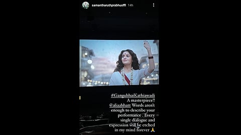 Actress Alia Bhatt starred as the Mafia Queen Gangubai in the recent film ‘Gangubai Kathiawadi’ which released to rave reviews from critics and Bollywood celebrities. Tollywood actress Samantha Ruth Prabhu praised the film on her Instagram account, calling it a "masterpiece."