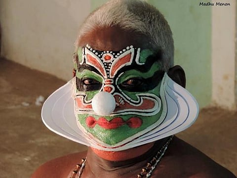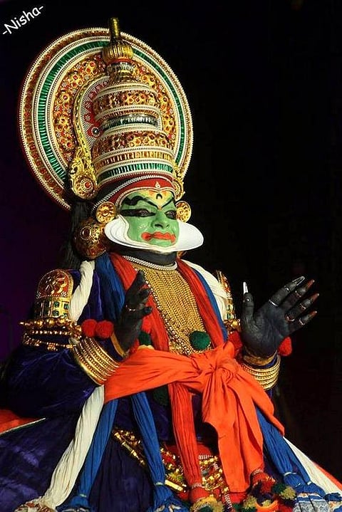 In the 60-watt yellowness of the greenroom, Sadanam Krishnankutty’s face gains a magical sheen when he carefully applies the colours on the stylised sketch that is suggestive of the character in his art of Kathakali. It takes another three hours for the actor-dancer to completely deck up and enter the stage for his power-packed performance from the mythological chapter.