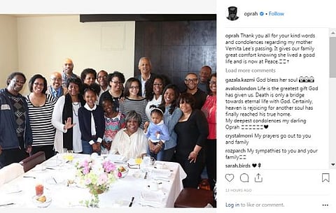 Oprah released a statement on her mother's death, saying, "Thank you all for your kind words and condolences regarding my mother Vernita Lee's passing. It gives our family great comfort knowing she lived a good life and is now at Peace."