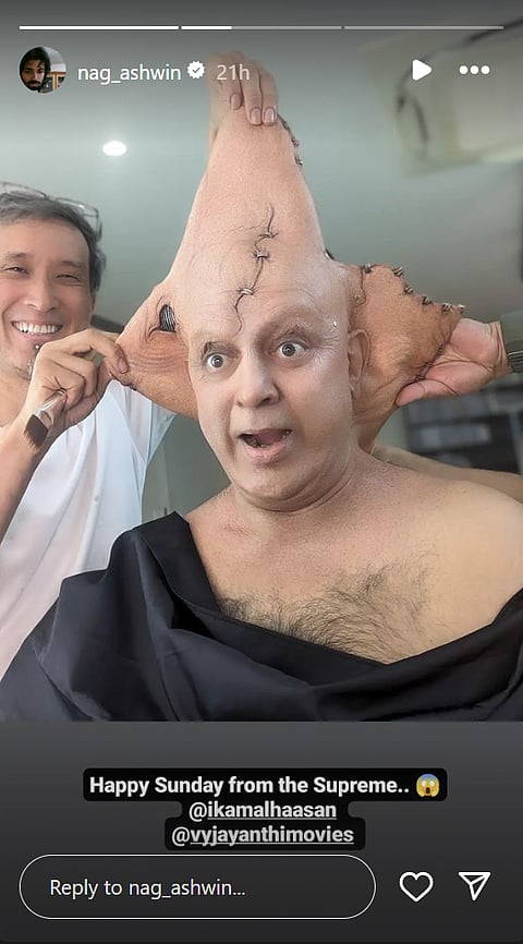 Even after almost a month since its release, ‘Kalki 2898 AD’ is still the talk of the town. This Nag Ashwin directorial stars Prabhas, Deepika Padukone, Amitabh Bachchan, and Kamal Haasan in lead roles. As the director is basking under the success of the film, he took to his social media to share a BTS picture of Haasan with prosthetics on his face as he got ready to play Supreme Yaksin.