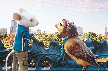 Put a little love in your heart...the world will be a better place for you and me...." The opening ditty of Stuart Little 2 sets the tone: it's an impossibly cheerful and hopelessly optimistic universe in which even the most alarming situations never seem threatening, because you know that all will not just end well, but very very well. Since we met him last in Part 1, Stuart has grown up to become a football buff with his loyalties resting firmly with Brazil, is proud to be part of the soccer team, he goes to school in his own car and also nurses a massive crush on the charming bird Margalo, who literally falls from the sky on to his car seat. The film can send any kid's imagination soaring skyhigh as Stuart flies his little aircraft or goes down the kitchen drain to search for his mother's lost ring. The adventures get more action-packed as he traverses through New York with the reluctant house cat, Snowbell, to rescue Margalo from the villainous Falcon. The final battle in the sky with Falcon makes for some edge-of-the-seat animation.