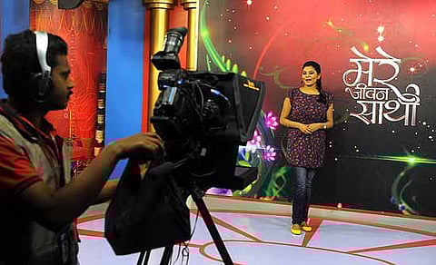 Walk into their multi-storey studio in Noida, and you are left in no doubt that the channel means business. A traditional marriage procession—horses, elephants and all—marches along in colourful illustration across the glass walls that lead into a ‘newsroom’. A crowd of wall-mounted flat screens blasts 10 different news and entertainment channels while heavily dolled-up anchors move in and out of cubicles, sporting all the frenzy of a wedding-in-the-works.