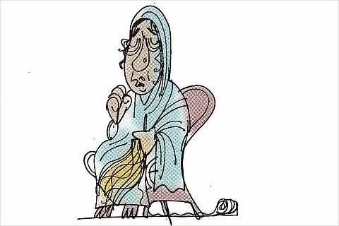 Widowed or separated, the poor mother eternally grappled with cataracts, struggling to put the thread through the eye of a needle. Incessantly coughing, she was indulgent towards her son, often a wastrel.