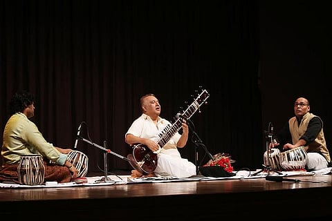 Ustad Shujaat Khan is a senior Hindustani instrumentalist of the country’s classical music tradition, while Kapila Venu from down south is a much younger practitioner of India’s only surviving traditional Sanskrit theatre. No direct scope for a compare-and-contrast. Yet, when the famed sitarist was succeeded on the stage by one of today’s top actor-dancers of Koodiyattam, the crowd at a Delhi venue this week sensed this element of curious overlap in their presentation kinetics.