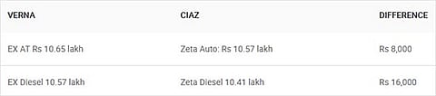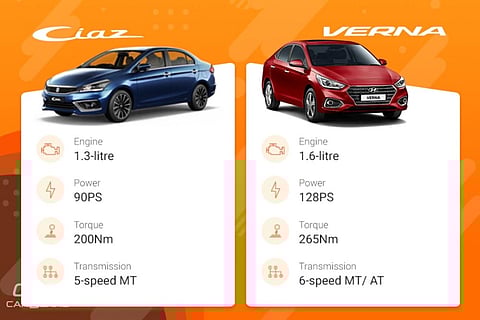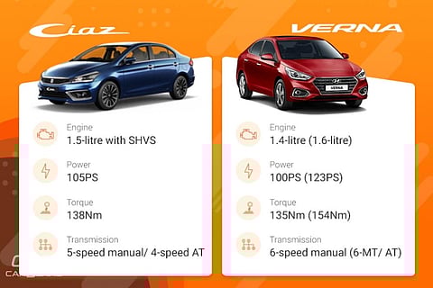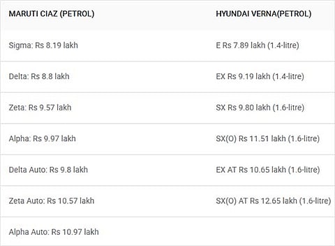 The 2018 Maruti Suzuki Ciaz facelift retains its competitive price tag despite receiving multiple new features and a new 1.5-litre petrol engine. The petrol engine is bigger in capacity compared to the 1.2-litre unit in the older model and is paired with a mild-hybrid system. It is not only more powerful but offers better fuel efficiency as well. The Ciaz’s prices start at Rs 8.19 lakh while the top-spec variant can be had for Rs 10.97 lakh (ex-showroom, Delhi). Several of its variants clash with the Hyundai Verna’s on the price chart. We find out which variant of the two sedans offers the best bang for your buck.