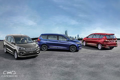 - The 2018 Ertiga can be had with blacked out alloy wheels or stylised wheel covers