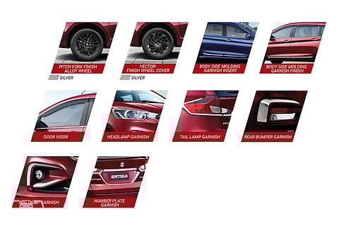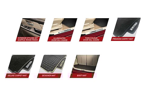 If you want your new Ertiga to look sporty, you can choose from front and rear lip spoilers, a roof mounted spoiler (Rs 4499) and side skirts (Rs 3199 to Rs 3799).