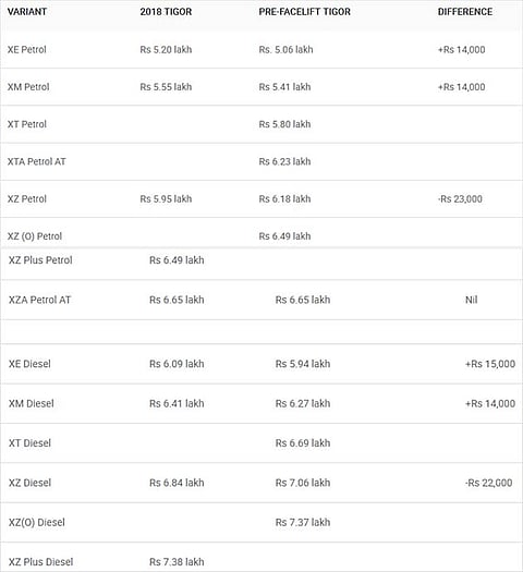 Tata Motors launched the 2018 Tigor facelift at a starting price of Rs 5.20 lakh (ex-showroom, Delhi). In order to distinguish it from the outgoing model, Tata has given the new Tigor some minor cosmetic changes as well as new features. Read on to find out what all has changed.