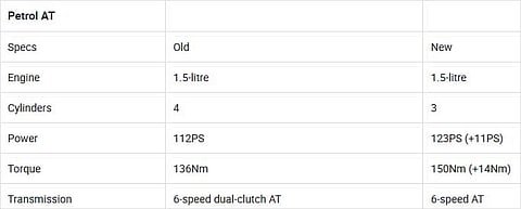 The new petrol-automatic uses a 1.5-litre engine mated to a 6-speed torque convertor and produces 123PS and 150Nm. The outgoing model’s less powerful 1.5-litre unit was paired to a 6-speed DCT.